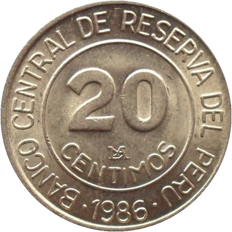 Peru 20 centimos 1986 KM# 294 Perou |