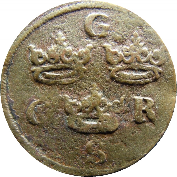 Sweden Copper 1655 1/4 Ore C.R.S SCARCE KM# 211 (10 245) | |