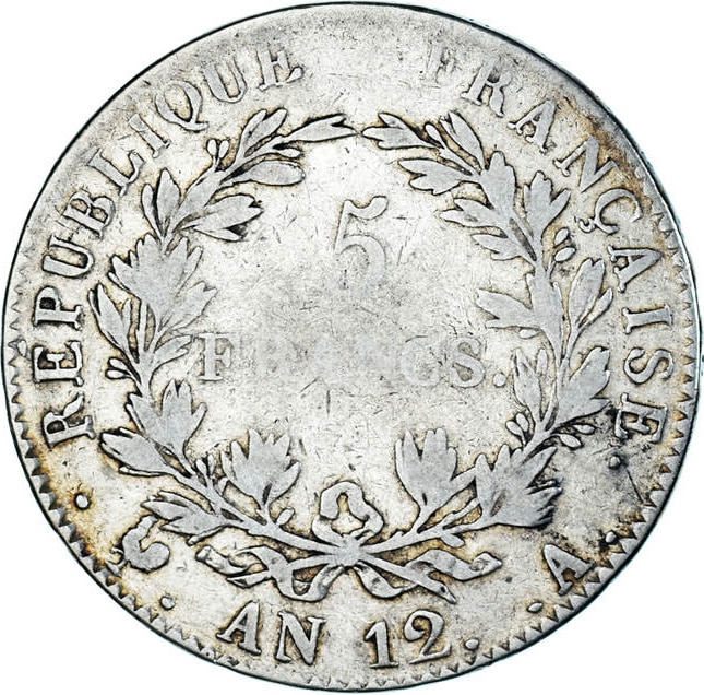 1803 France, Napoleon L’An 12-A 5 Francs, "Emperor" Paris Mint, KM-660.1 |
