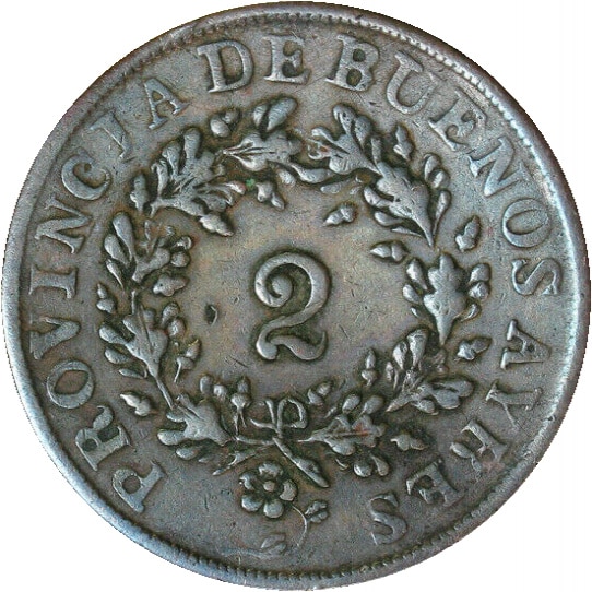 Argentina - Buenos Aires, 2 Reales 1853, Old Copper Coin, KM 9 | |