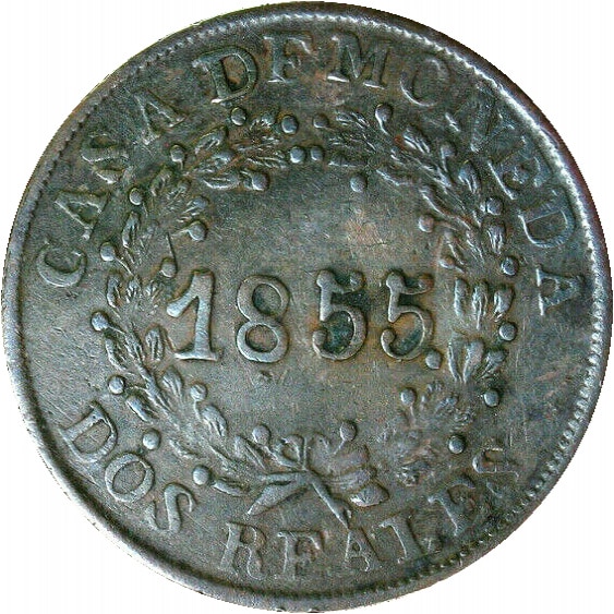 ARGENTINA COPPER COIN 2 Reales, KM9, F+ 1855 | |