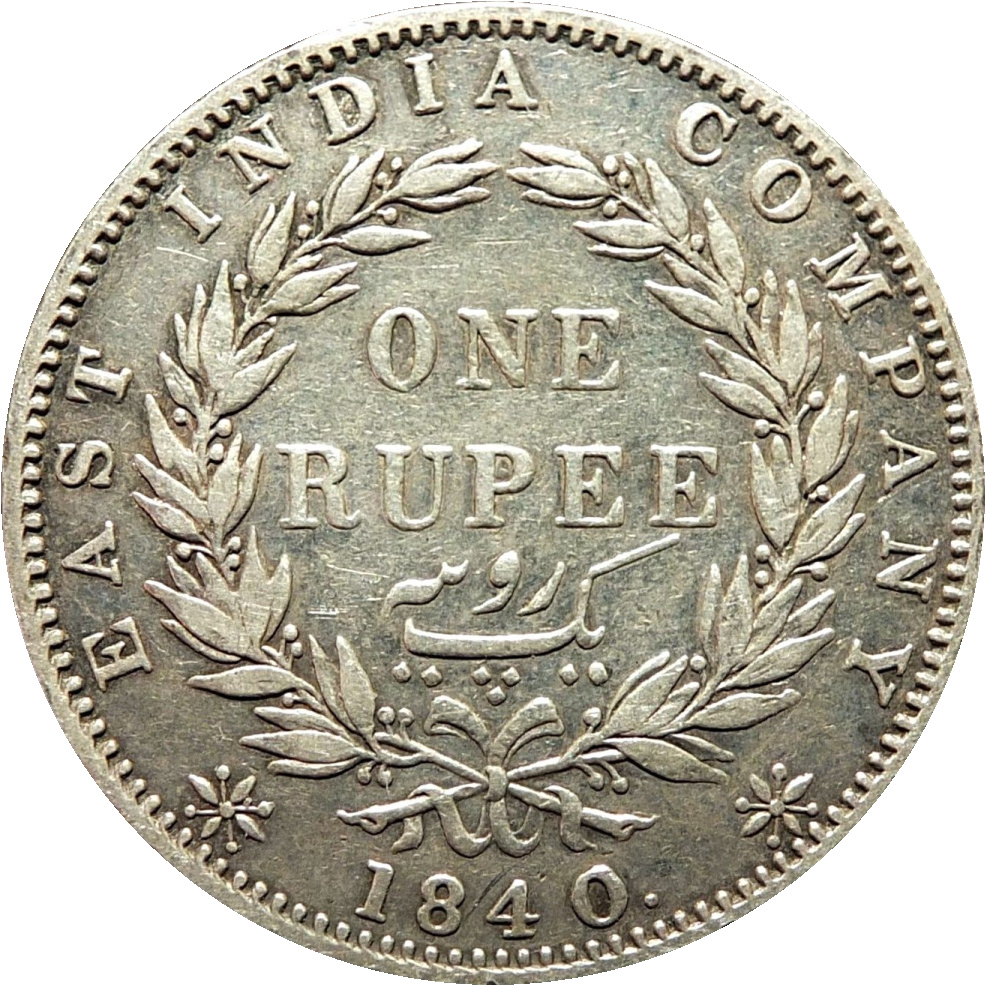 1840 British India 1 Rupee, KM-457.2. | |