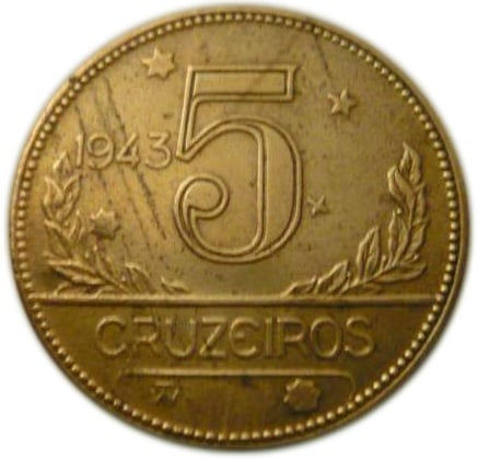 5 Cruzeiros Brazil Coin from 1943 - Aluminum Bronze - KM# 560 i567 |