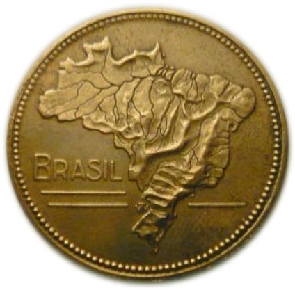 Brazil 5 Cruzeiros 1942 aluminum-bronze KM#560 5C Republic Topographical map | Brazil |