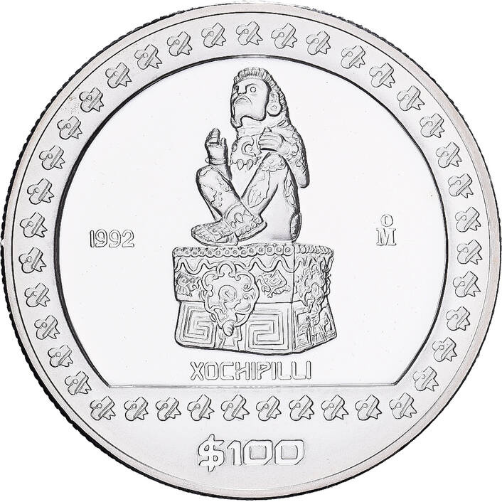 | Colnect: | https://colnect.com/en/coins/coin/49336-100_Pesos_xochipilli-1993%7EToday_-_Numismatic_Products_Precolombina-Mexico |