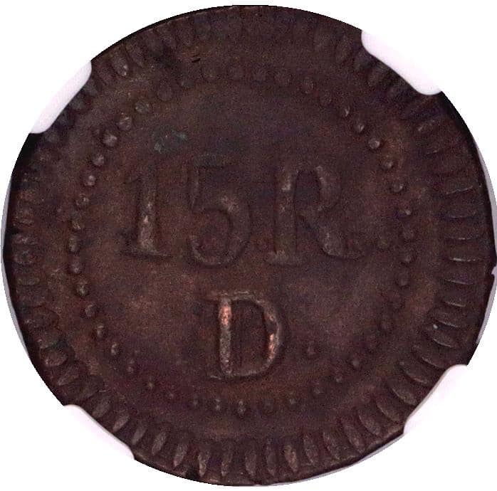 India Portuguese 15 Reis - 1/4 Tanga 1854 NGC UNC |