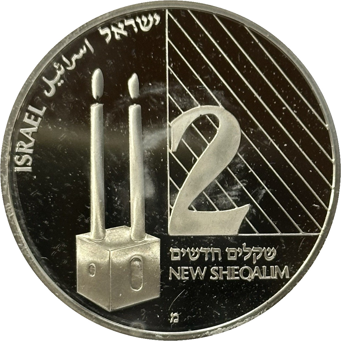 1992 Israel silver 2 sheqalim, DCAM proof, Shabbat candlestick,mint:4,975,KM-239 |