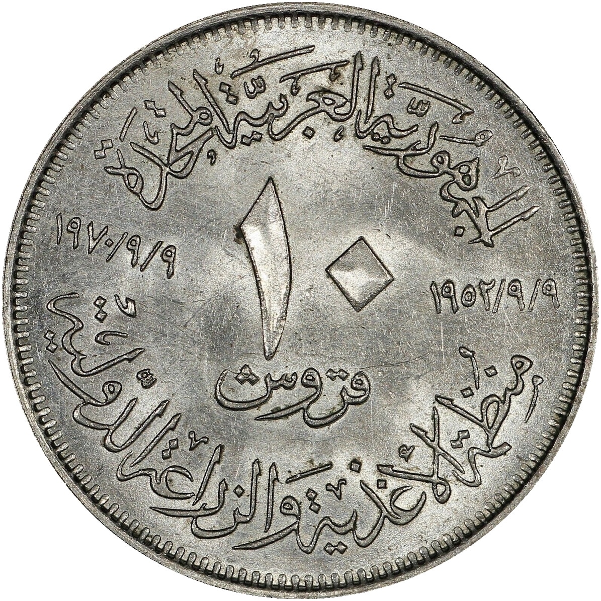Egypt / 10 Piastres / 1970 / KM.418 / Copper-Nickel |