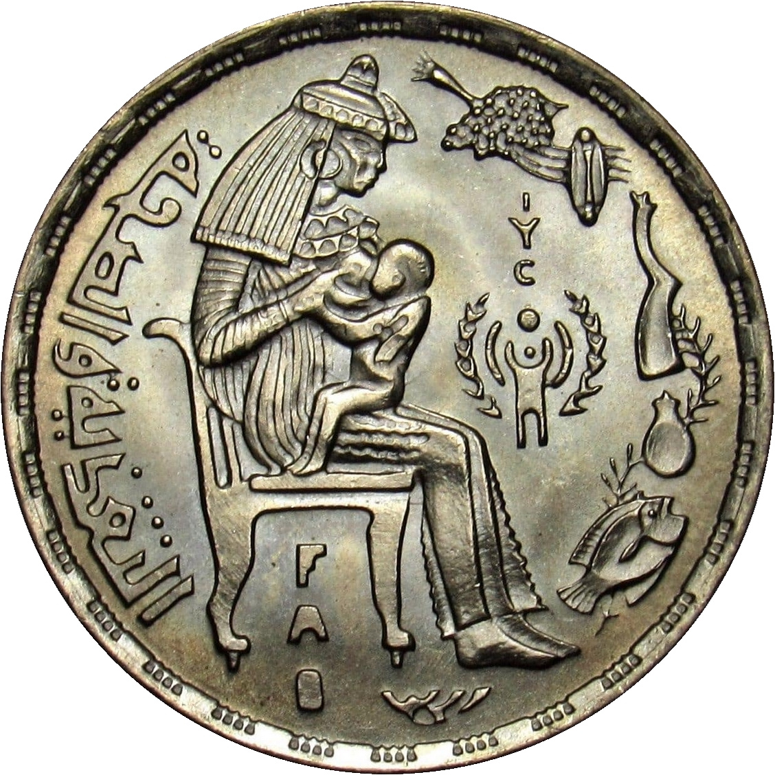 Egypt 5 Qirsh Coin | Breastfeeding a child | IYC & FAO | KM484 | 1979 | |