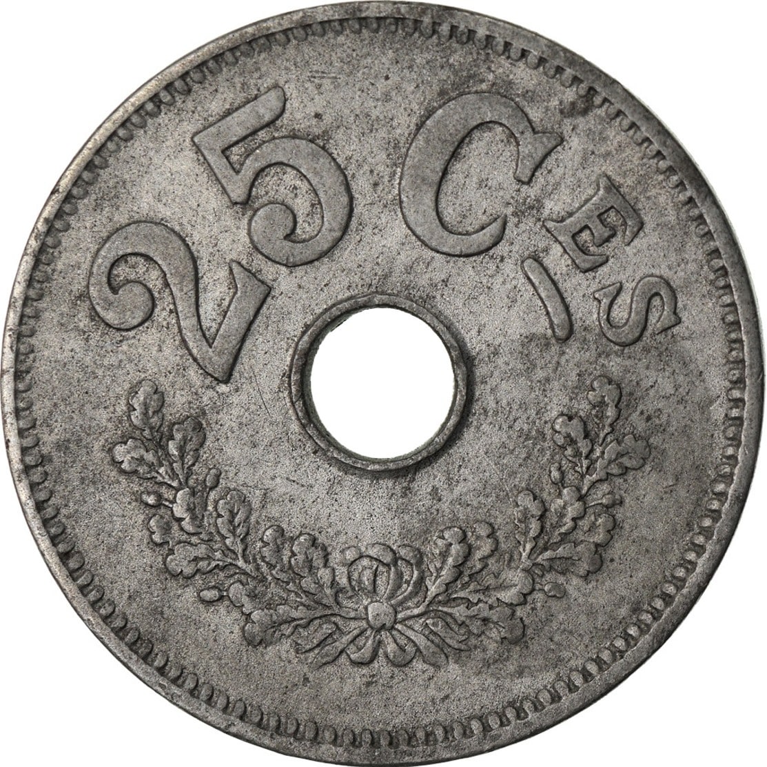 Luxembourg Grand Duchy 25 Centimes 1916. KM#29. Holed Zinc 25 Cents coin. WWI. | |