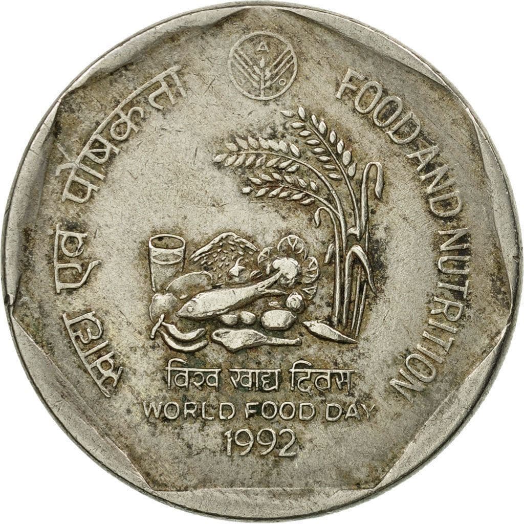 India 1 Rupee (F.A.O. - World Food Day 1992). commemorative coin. km94 26.2mm | |
