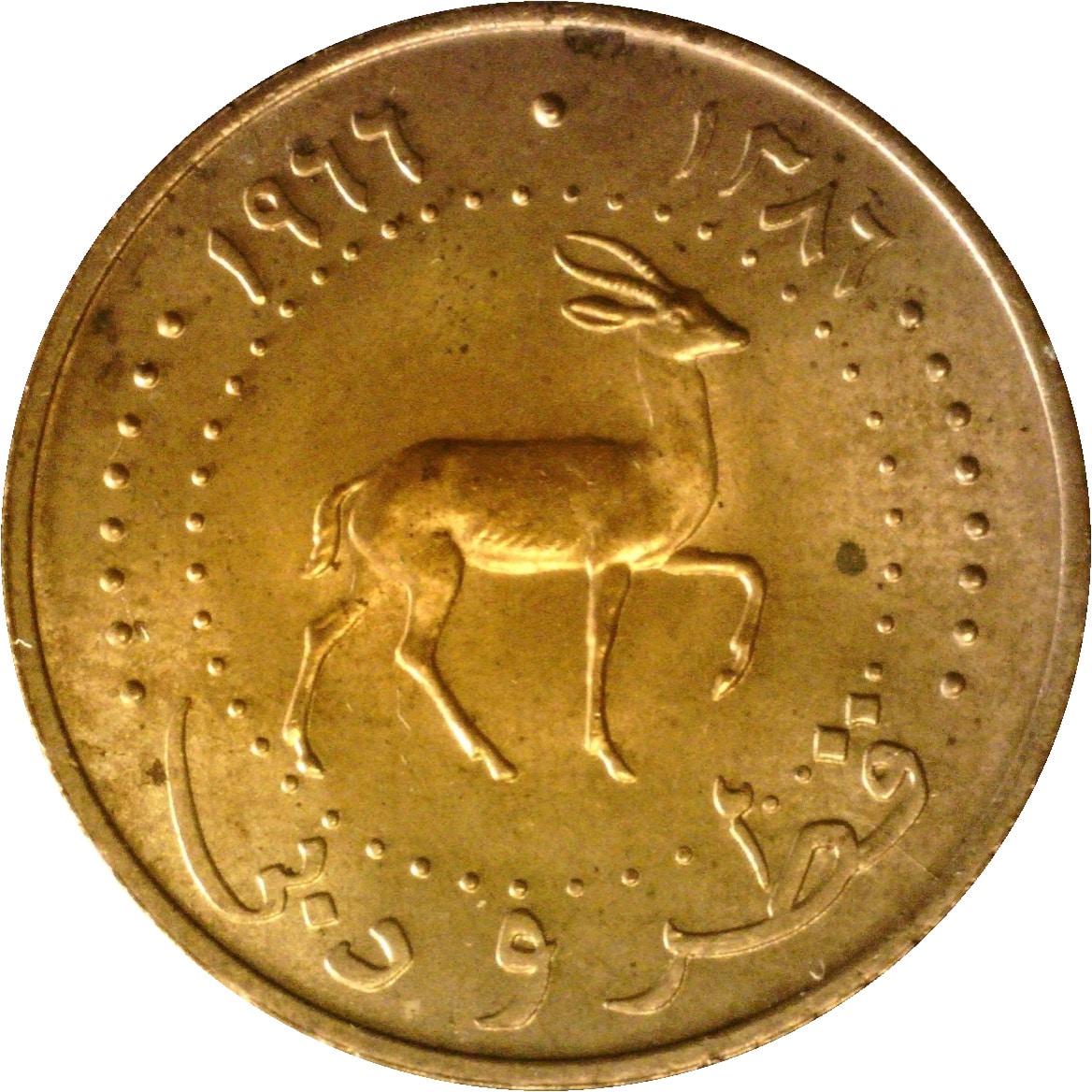 Qatar & Dubai 5 dirhams 1966 (1386) Gazelle KM#2 3.75g 22mm Bronze aXF B383 | |
