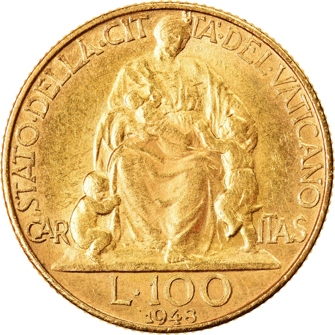 Vatican 1948 Year X Gold 100 Lire KM-39 NGC MS-65. | |
