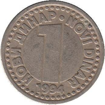 Yugoslavia 1994 Nickel-Brass 1 Novi Dinar. KM# 165 | |