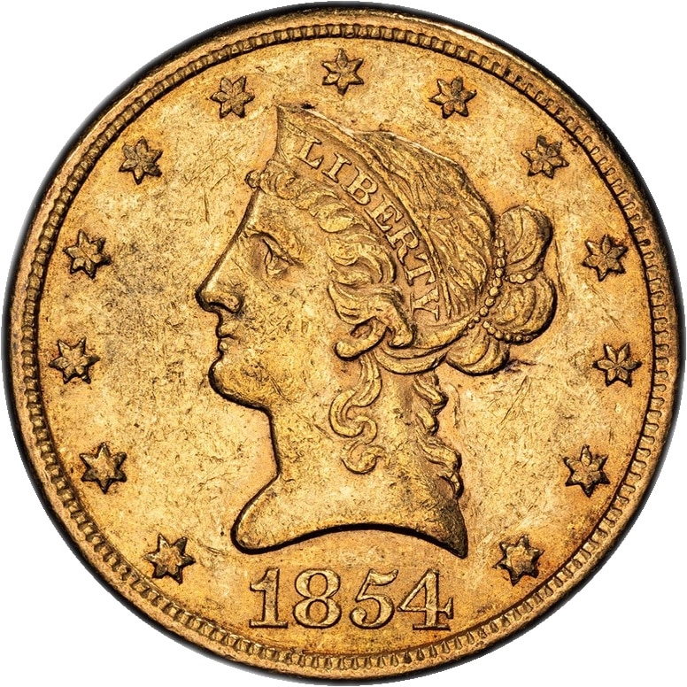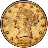 1854 $10, Eagle. PCGS AU58.Philadelphia No motto above eagle. KM 66.2. | | USA |