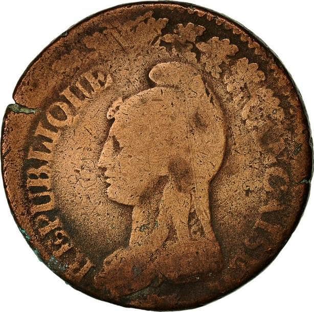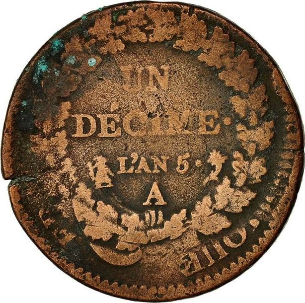 Lan 8 A (1799-1800) Republic of France Un Decime KM #645.1 Copper Coin | |