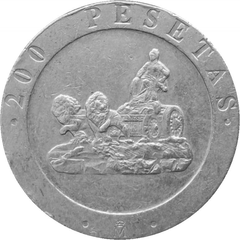 Spain 200 Pesetas, Cibeles Fountain - Madrid. km855. Europe coin. Circulated. |